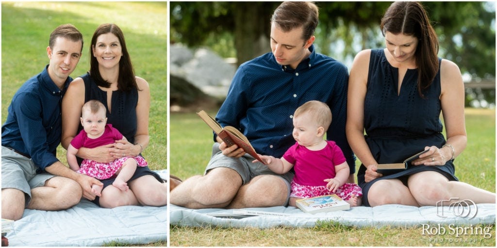 Family sessions don’t get much cuter than this! Heather and Dylan are one of my favorite couples because they are adorable bookworms. Books are a big part of their lives and now their new cutie, Madeline’s, life as well. This family is so perfect and I loved shooting these photos at the same place they got married. So special! 🙂