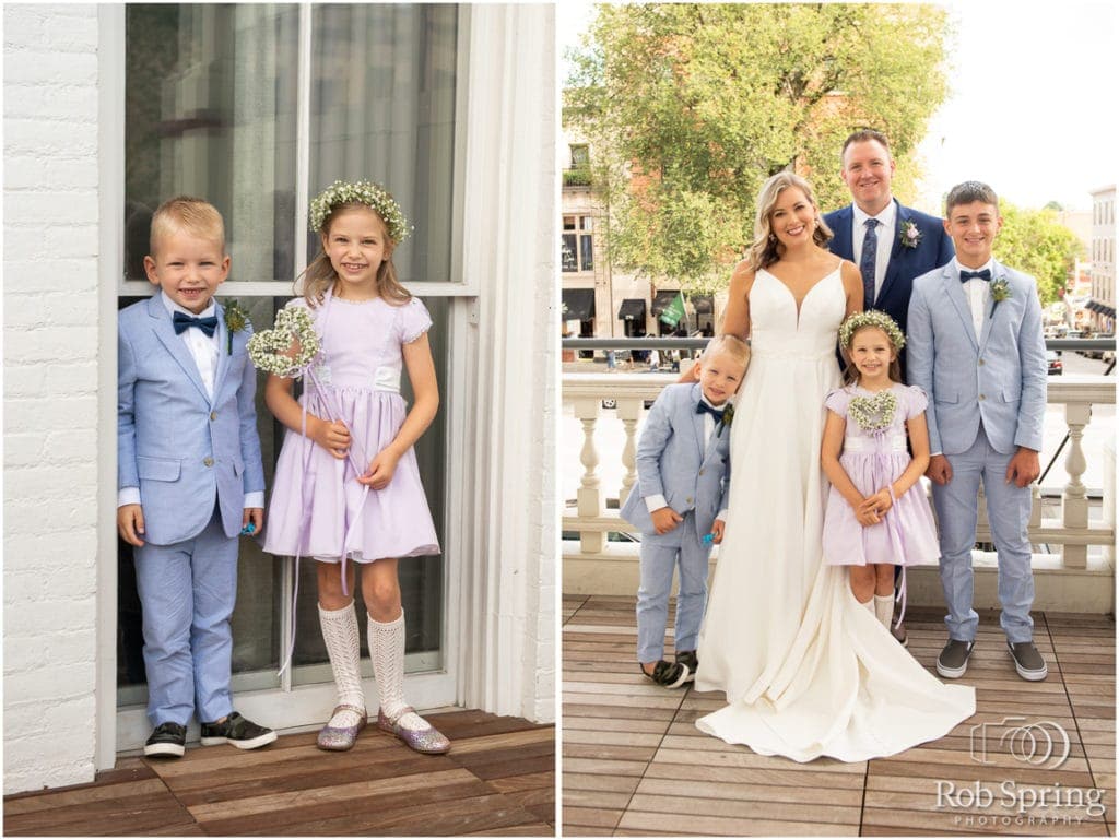 Emily & Matt are married!! In a year of loss, bad news, and emotional turbulence, Emily & Matt’s wedding was a bright and wonderful day! This is the kind of day we all want for ourselves, filled with joy and happiness, love and laughter, Emily and Matt! And their fabulously well dressed children, of course. You may recognize Emily, she’s been working with us here at Rob Spring Photography for 8 years!! After years of her helping make everyone else’s day special, it was finally her turn. I’m so happy I could be part of it!! (also, have you had that giant thick cut bacon they serve at The Adelphi???) Congratulations Emily & Matt! I wish every wedding was as fun and stress free as your wedding day was! And I hope these photos remind you of that day for years to come!
