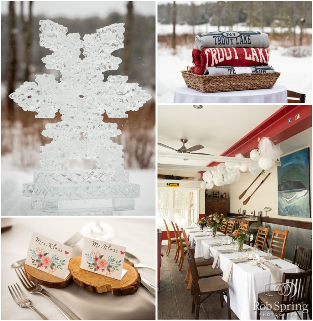 This was a DREAM winter wedding for Victoria & Max (and ME)! When you get married in the Adirondacks in February, you want snow on the ground, but you don’t want it to be under 10 degrees. Not only did Victoria & Max get both of these – they got a frozen lake to walk across (and have their ceremony on) – Trout Lake, if you’re wondering, AND the perfect snowfall, AND it was a balmy 25 degrees. This is the kind of winter wedding day that I dream of! I’ve never seen something so perfect. Not only was it their family property where they celebrated, but they even held the ceremony out on the lake above the spot where they had scattered the ashes of Max’s late mother. So even she could be there. It was such an emotional and wonderful day. I wish we could do it again! Congratulations Victoria & Max, I just loved working with you, being part of the day, and being there to capture it for you!